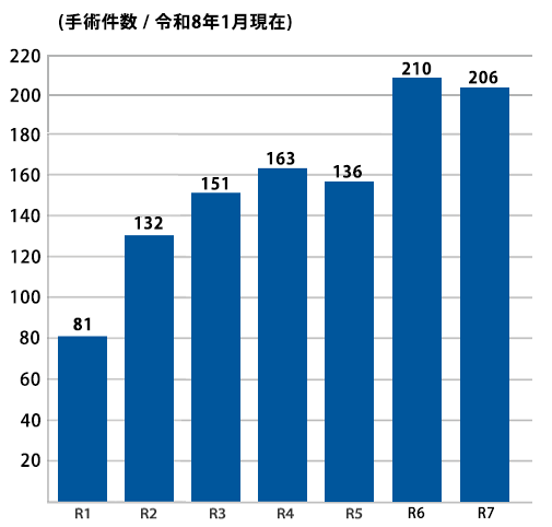 [令和06年度実績 ■遠近両用眼内レンズ…4件 ■乱視用眼内レンズ…205件 ■年間手術日日数…41日]